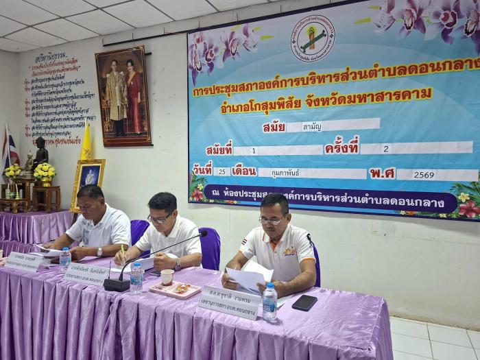 ประชุมสภาองค์การบริหารส่วนตำบลดอนกลาง อำเภอโกสุมพิสัย จังหวัดมหาสารคาม สมัย สามัญ สมัยที่ 1 ครั้งที่ 2 วันที่ 25 กุมภาพันธ์ พ.ศ. 2569 ณ ห้องประชุมสภาฯ
